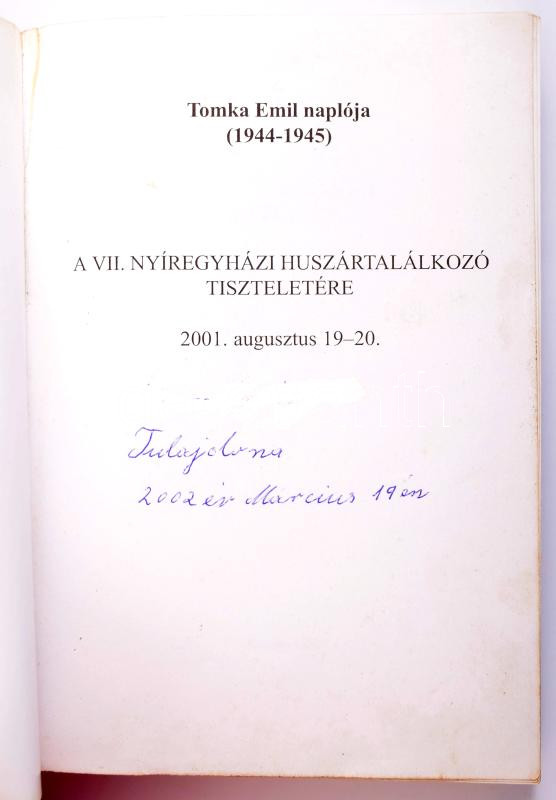 Leírás: Tomka Emil: Harctéri napló - Tomka Emil naplója (1944 - 1945) Nyíregyháza, 2001. Jósa András Múzeum. 392p. Kiadói papírkötésben Tulajdonosi névbejegyzéssel