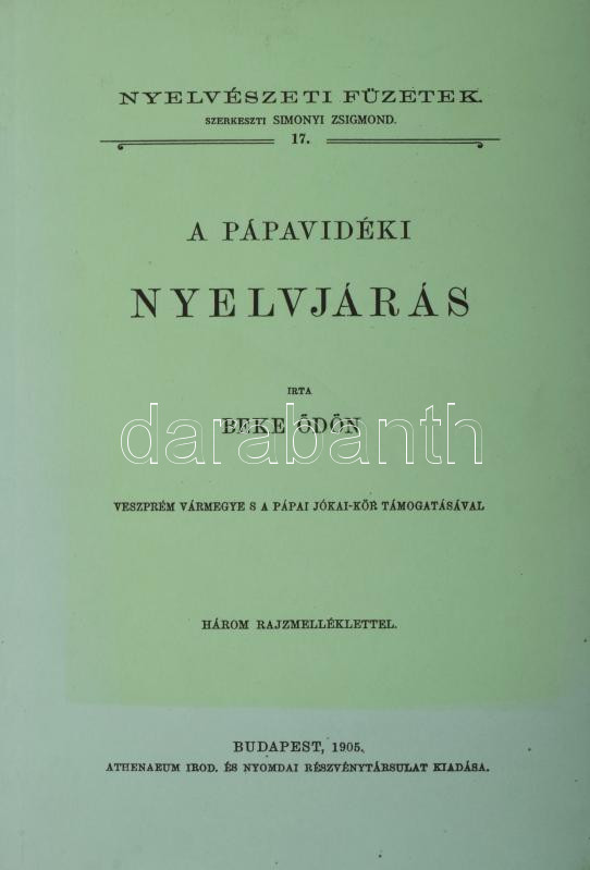 Beke Ödön: A pápavidéki nyelvjárás. Nyelvészeti füzetek 17. Jókai Reprint 4. Pápa, én., Dunántúli Református Egyházkerület Tudományos Gyűjteménye - Jókai Mór Városi Könyvtár, 72 p. Az 1905-ös kiadás reprint kiadása! Kiadói papírkötés.