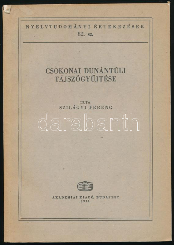 Szilágyi Ferenc: Csokonai dunántúli tájszógyűjtése. Egy fejezet irodalmi nyelvi szókincsünk történetéből. Nyelvtudományi Értekezések 82. sz. Bp., 1974., Akadémiai Kiadó, 237+3 p. Kiadói papírkötés.