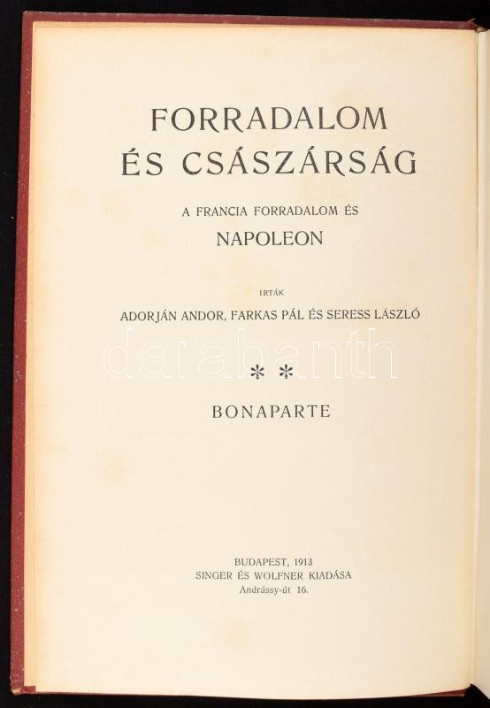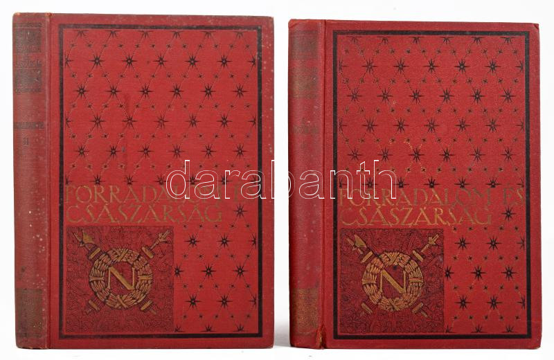 Seress László: Bonaparte II. köt., Adorján Andor: A császárság. II. köt. Bp., 1913-1914., Singer és Wolfner. Kiadói aranyozott, festett egészvászon-kötések, kopott, foltos borítókkal, egy köteten kis sérüléssel.