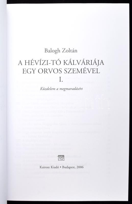 Leírás: Balogh Zoltán: A Hévízi-tó kálváriája egy orvos szemével I. Küzdelem a megmaradásért. DEDIKÁLT! Bp., 2006, Kairosz. Kiadói papírkötés, jó állapotban.