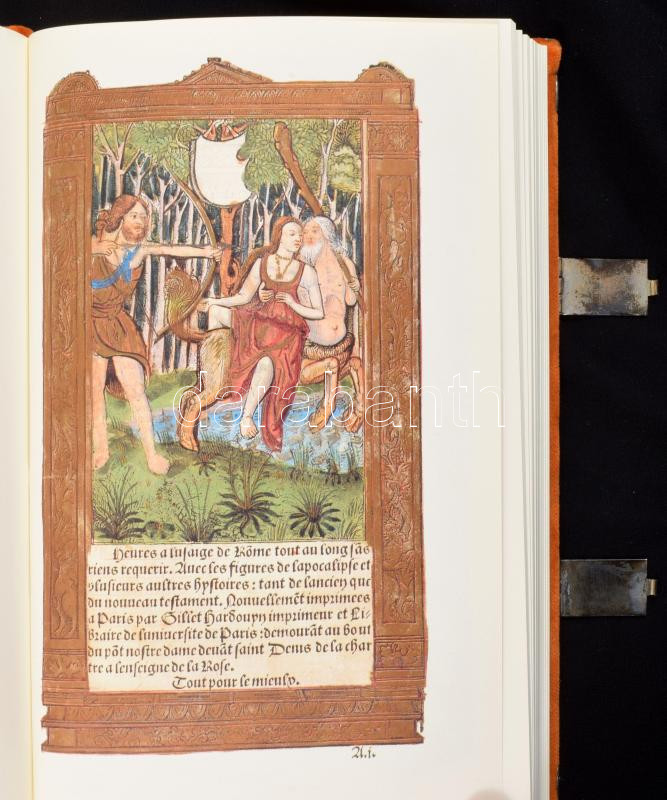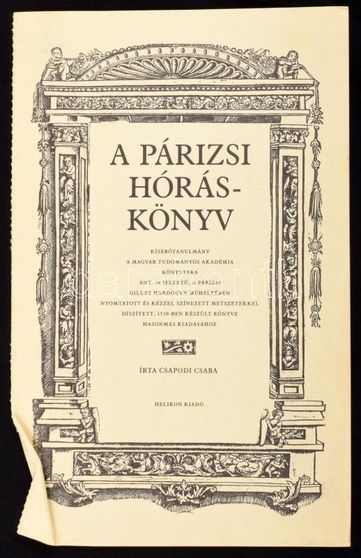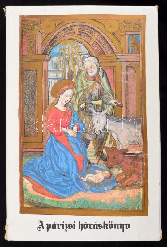 A párizsi hóráskönyv. Bp., 1985, Helikon. Facsimile kiadás, kísérőtanulmánnyal. Kiadói bársonykötés, fém veretekkel, kiadói kartontokban rajta kis szakadás. Számozott példány.