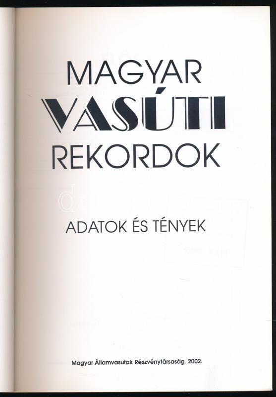 Kovács László (szerk.): Magyar vasúti rekordok. Adatok és tények. Bp., 2002, Magyar Államvasutak Rt., 183+(1) p. Első kiadás. Kiadói papírkötés, intézményi bélyegzőkkel.