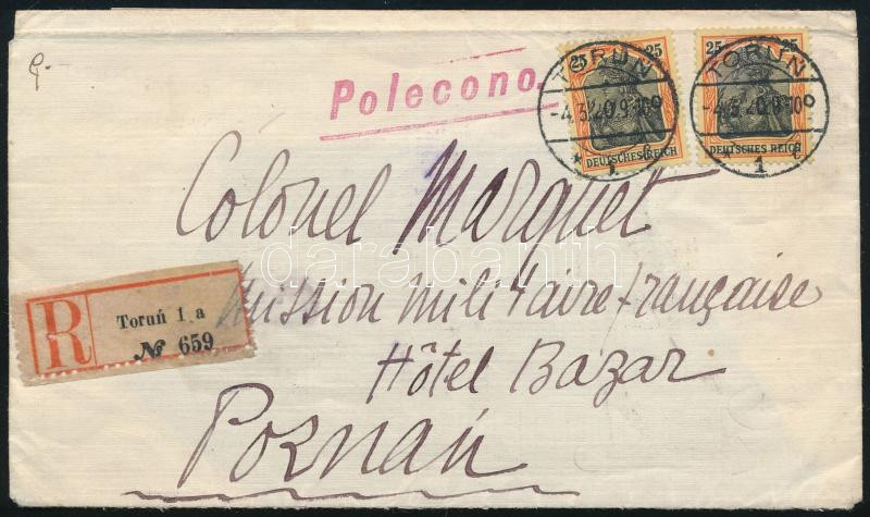 1920 Ajánlott levél / Registered cover "TORUN" https://www.darabanth.com/hu/508-Gyorsarveres/508.0/Kulfoldi-filatelia-es-postatortenet/Deutsches-Reich~356/1920-Ajanlott-level-Registered-cover-TORUN~II3438356