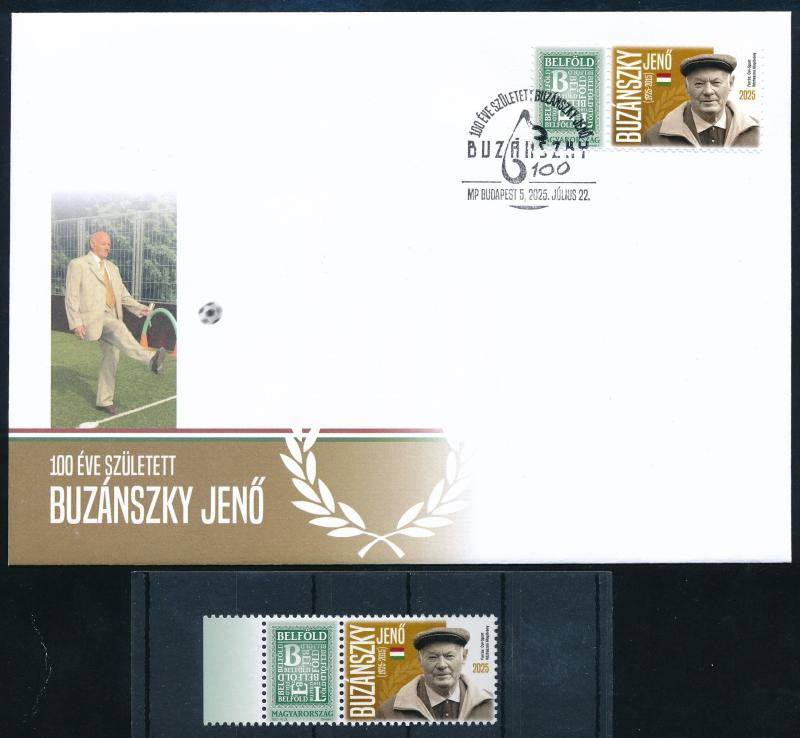 Leírás: 2025 100 éve született Buzánszky Jenő megszemélyesített Belföld bélyeg + FDC-n