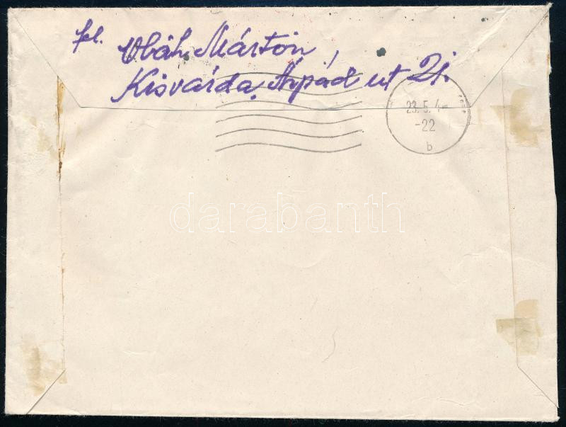 Leírás: 1946 (15. díjszabás) Külföldre küldött levél 40.000.000P készpénzes bérmentesítéssel