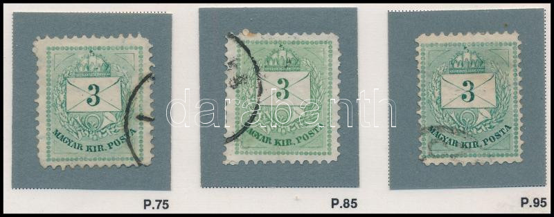 Leírás: 1881 2 db 3kr klf vésésjavításokkal, karcokkal, hidegtűnyomokkal (ex Orbán, Sebestyén aranyérmes kiállítási anyagból)