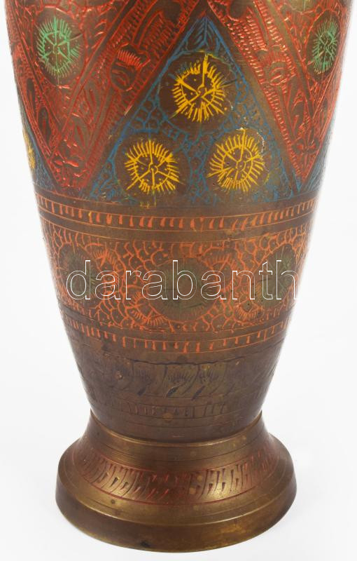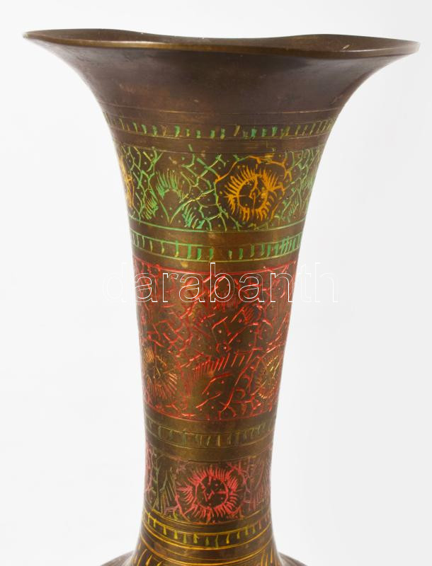 Leírás: Indiai réz váza, vésett mintával díszítve, m: 36 cm