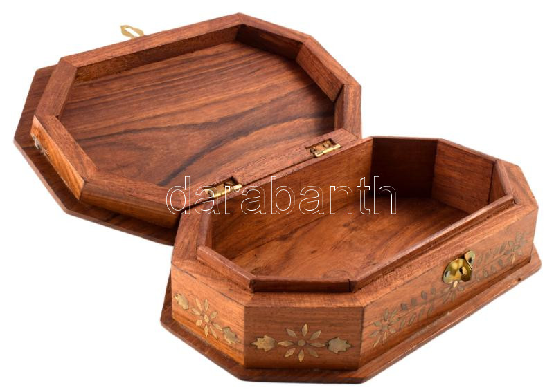 Indiai rézintarziás díszdoboz, 13x21 cm