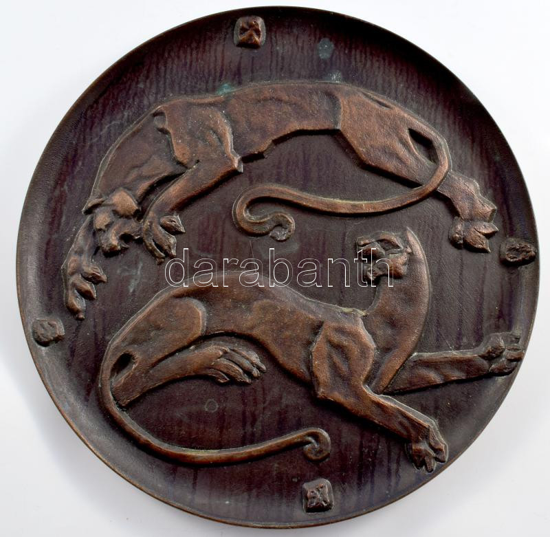 Leírás: Orosz jaguármintás dísztál, bronzírozott alumínium, d: 27 cm