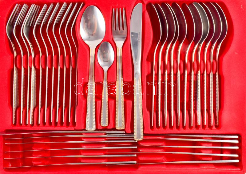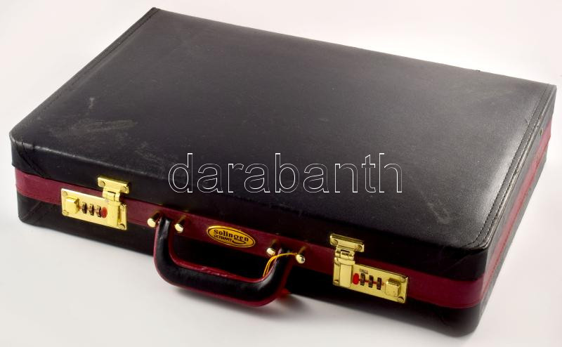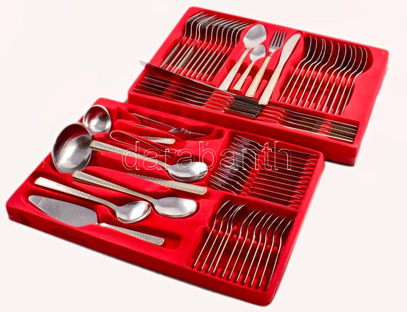 Leírás: Wiss Mayer Solingen sokdarabos evőeszköz készlet, 2 tálcán, certifikátokkal, díszkofferben.