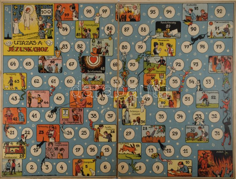c 1930 Utazás a Jézuskához társasjáték táblája. 44x31 cm https://www.darabanth.com/hu/508-Gyorsarveres/508.0/Mutargy-papirregiseg-egyeb/Jatekok~72/c-1930-Utazas-a-Jezuskahoz-tarsasjatek-tablaja-44x31-cm~II3441542