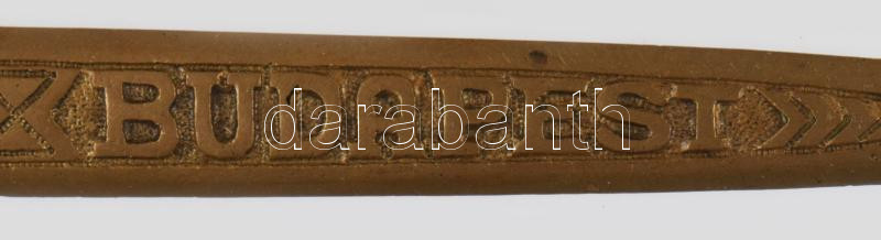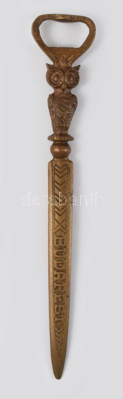 Leírás: Levélnyitó, Bagoly figurás, Budapest feliratos réz 20 cm