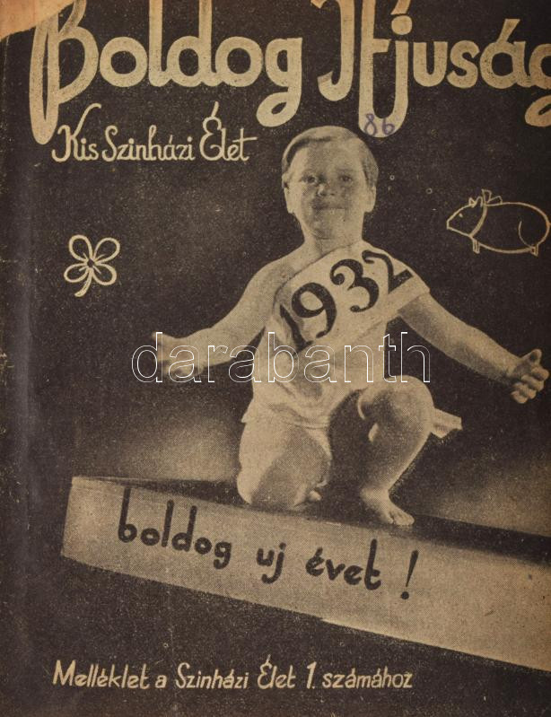1932 Boldog Ifjúság 17 db szórványszám, /vegyes állapot/ egybekötve, A Színházi Élet gyermekmellékletei, 32 oldalas, kis méretű újságok, bennük Pat Sullivan Sicc /eredeti nevén Felix/. Lóri papagáj, Vogel Eric képregény, mesék, fotók, érdekességek, Gratzer József többnyire megfejtett fejtörői, Gedő Lipót, Szakmáry rajzai, B. Radó Lili, Váró Andor, Hárs László és mások meséi, versei 1., 8., 9., 11.,12.,13.,18.,19.21.,24,25.26.27.34.45,47.48 számok