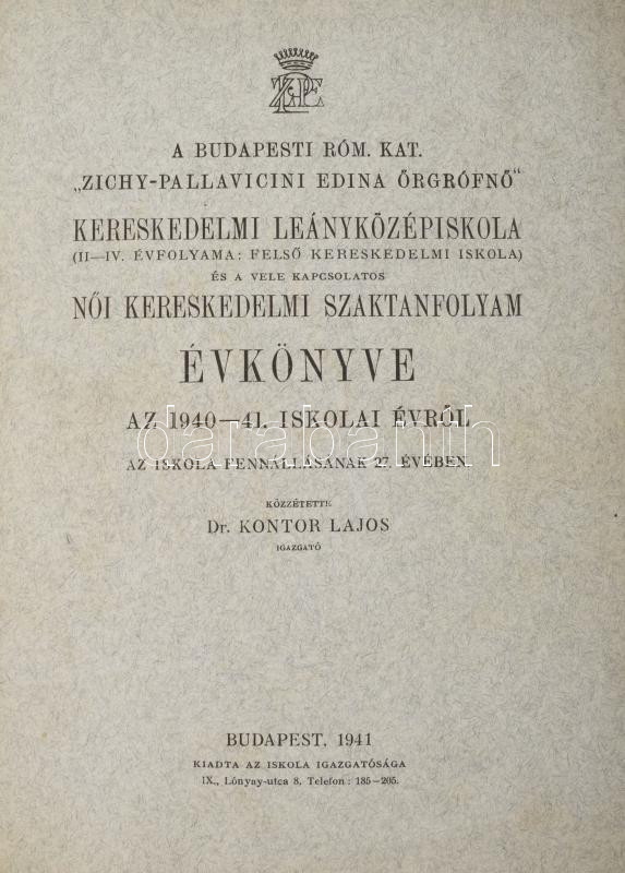 Leírás: 1939-1944 A Szent Margit Nevelőintézet és a Budapesti Róm. Kat. "Zichy-Pallavicini Edina őrgrófnő" Kereskedelmi Leányközépiskola évkönyve, 4 db