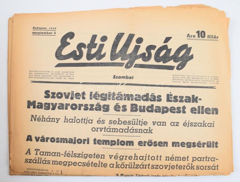 1942 Esti Ujság + Esti Kurir: Szovjet támadásokról szóló világháborús ... https://www.darabanth.com/hu/508-Gyorsarveres/508.0/Mutargy-papirregiseg-egyeb/Nyomtatvanyok~852/1942-Esti-Ujsag-plus-Esti-Kurir-Szovjet-tamadasokrol-szolo-vilaghaborus-hirekkel-3Cbr-3E~II3408137