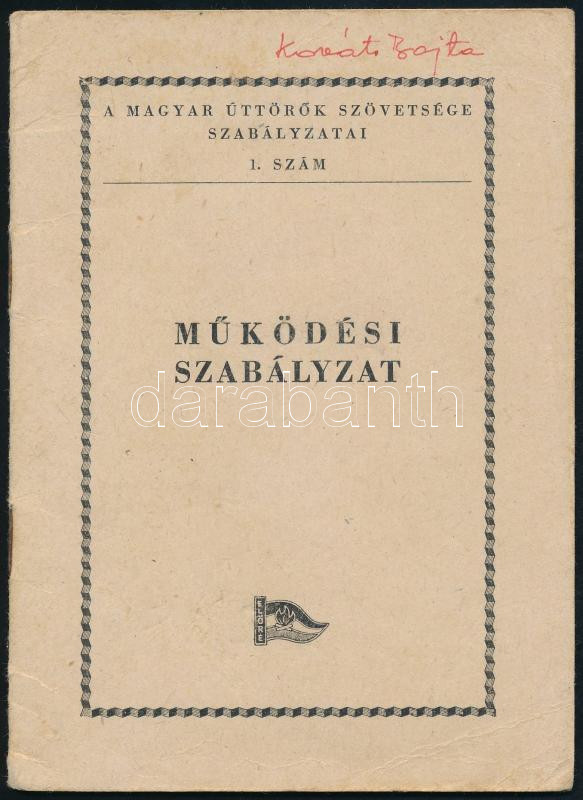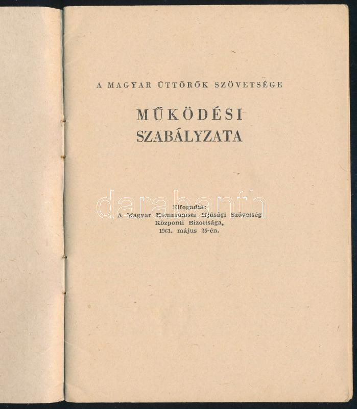 1962 A Magyar Úttörők Szövetsége működési szabályzata. A Magyar Úttörő... https://www.darabanth.com/hu/508-Gyorsarveres/508.0/Mutargy-papirregiseg-egyeb/Nyomtatvanyok~852/1962-A-Magyar-Uttorok-Szovetsege-mukodesi-szabalyzata-A-Magyar-Uttorok-Szovetsege-sza~II3439393