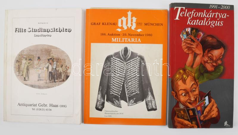 Leírás: Vegyes árverési katalógus tétel: korai 90es évek magyar árverései, külföldi, benne több militária, telefonkártya is.
