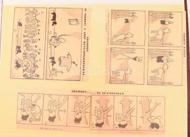 ca 1930 Bonzó, Mickey Mouse, Hegyesszakállú király, Adamson úr képregények kivágva, a Pesti Hírlap magazinjából, 20 oldalaos albumban, Adamson 18 db, BOnzó 12 db, 2 oldalnyi Walt Disney