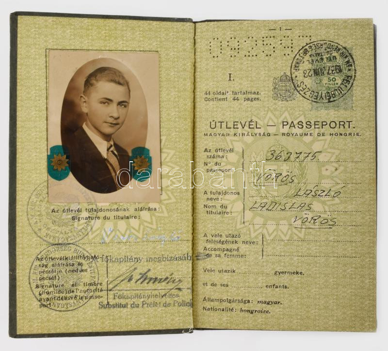 1938 Útelvél keményfedeles, fényképpel https://www.darabanth.com/hu/508-Gyorsarveres/508.0/Mutargy-papirregiseg-egyeb/Okmanyok~679/1938-Utelvel-kemenyfedeles-fenykeppel~II3441540