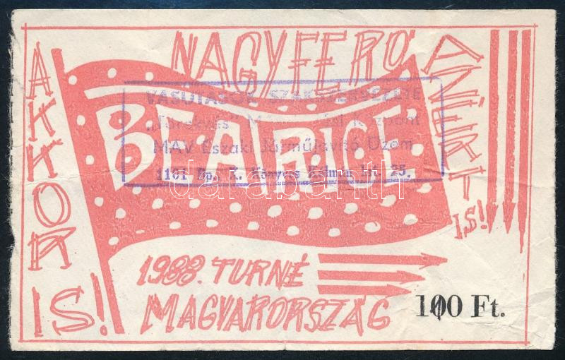 Leírás: 1988 Beatrice - Nagy Feró "Akkor is! Azért is!" 1988. turné koncert belépőjegy
