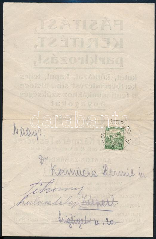 Leírás: 1926 Balatonzamárdiban működő Molnár K. kertépítő cég reklám szórólapja, jó állapotban, postán elküldve