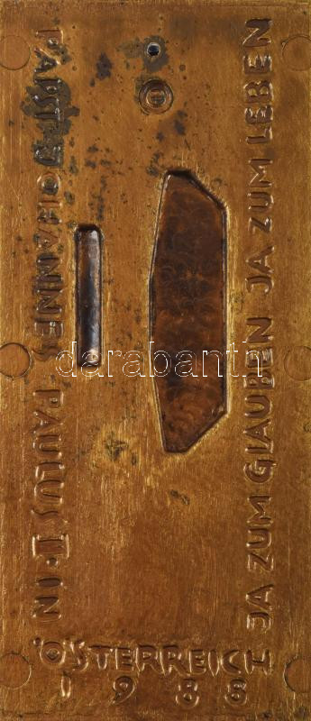 Leírás: Erwin Huber (1929-2006): II. János Pál pápa emlék relief, Ausztria, 1988. Réz, jelzett, 16,5x7 cm