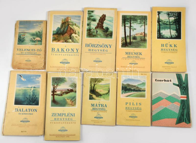 Leírás: 10 db magyar turistatérkép (Cserhát, Mátra, Zempléni-hegység, Balaton és környéke, stb.), változó állapotban