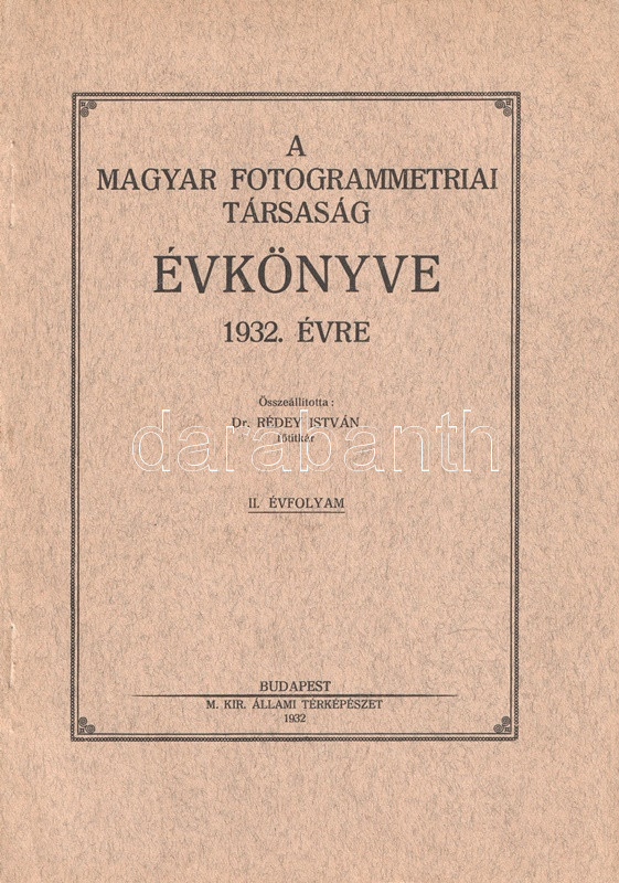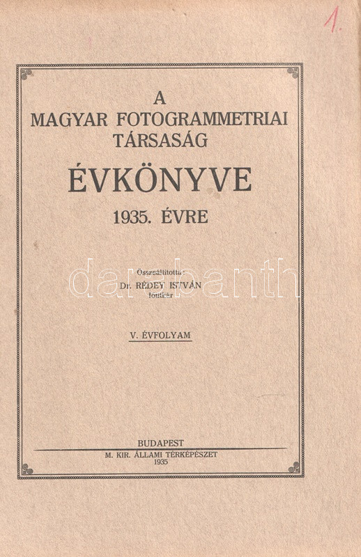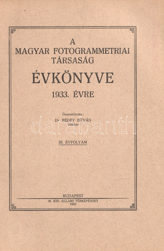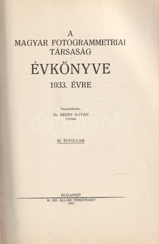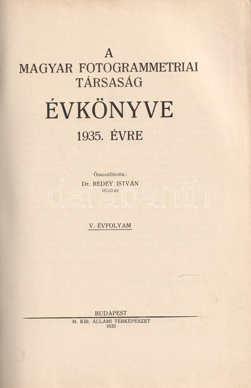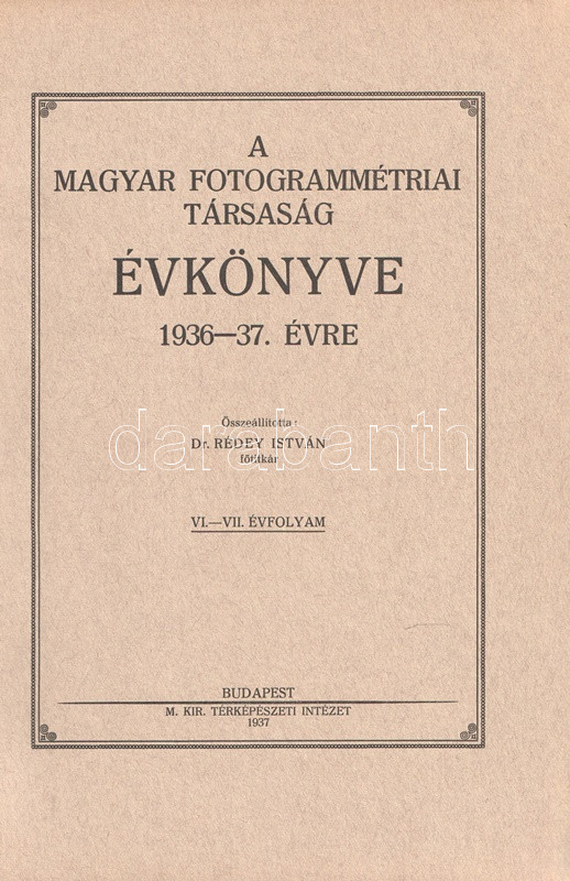 A Magyar Fotogrammetriai Társaság Évkönyve az 1932., 1933., 1934., 1935., 1936-37., 1938-39. évre. Összeállította: Rédey István és Csiszár Sándor. (II-IX. évfolyam) [Hat füzetben].