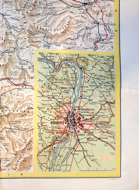 Budapest, 1947. Honvéd Térképészeti Intézet. Színes térkép, mérete: 570x825 mm egy 620x925 mm méretű térképlapon.