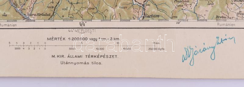 Leírás: cca 1920 Kézdivásárhely és környékének térképe, 1 : 200.000, M. Kir. Állami Térképészet, néhány lapszéli sérüléssel, feltekerve, 63x46,5 cm