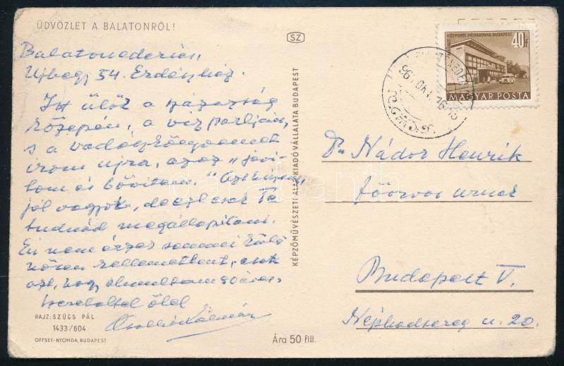 Leírás: 1960 Csathó Kálmán (1881-1964) író tintával írt, autográf levelezőlapja Nádor Henrik orvosnak Balatonedericsről