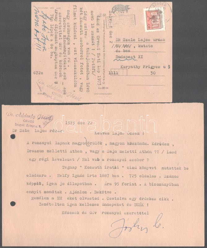 Leírás: 1971, 1973 Dr. Ádámfy József történész, gyerekorvos 3 db levele