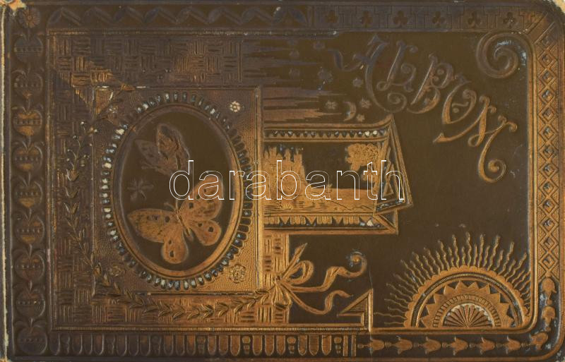 Leírás: cca 1899 Kézzel írt emlékkönyv aranyozott, dombornyomott kötéstáblákkal
