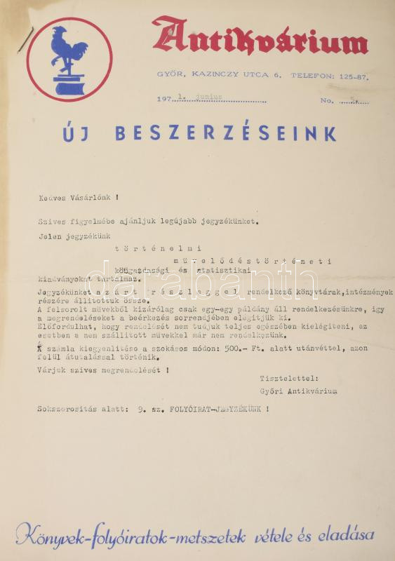 cca 1960-1975 Antikváriumi árjegyzékek és aukciós katalógusok https://www.darabanth.com/hu/508-Gyorsarveres/508.0/Mutargy-papirregiseg-egyeb/Tortenelmi-dokumentumok-keziratok-erdekessegek~853/cca-1960-1975-Antikvariumi-arjegyzekek-es-aukcios-katalogusok~II3438657