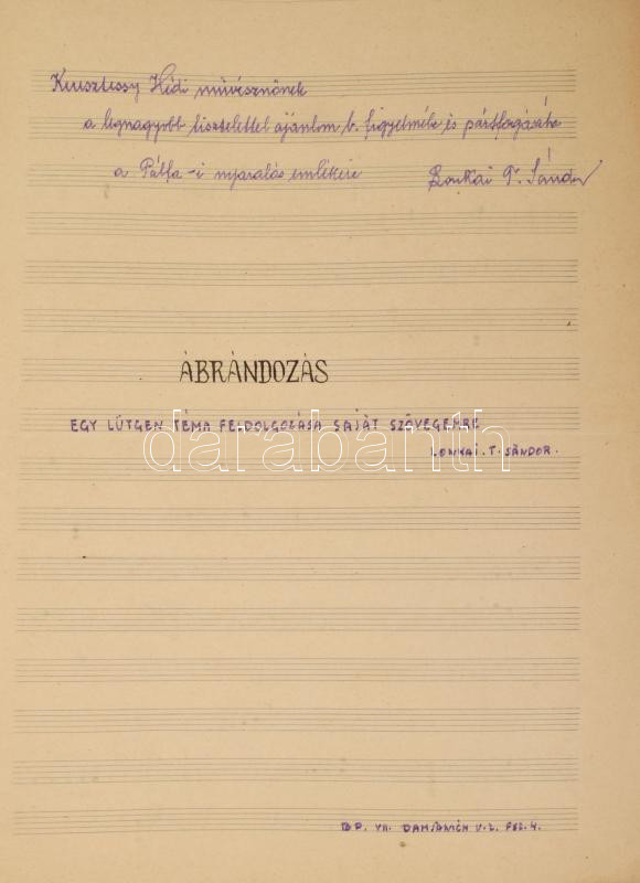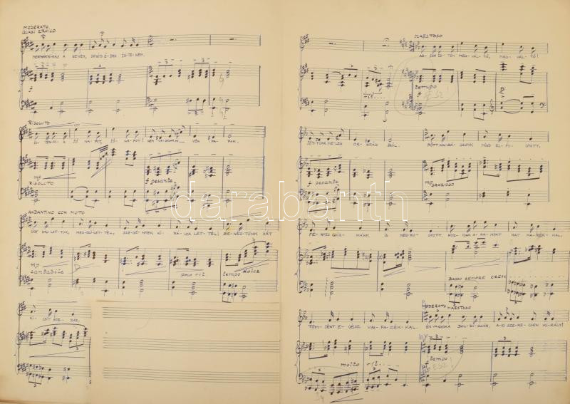 Kottagyűjtemény, nagyobb mappányi, nagyrészt kézzel írt kotta, közte dedikáltak: Vasadi Balogh Lajos (1921-2002) karmester, zeneszerző, zongora- és orgonaművész, Gárdonyi Zoltán (1906-1986) zeneszerző, zenetudós, egyetemi tanár, Gy. Czikle Valéria (1878-1954) író, színésznő és mások, mind Keresztessy Hédy (Kreutz Hedvig) (1920-1974) énekesnő részére szóló dedikációval. Változó állapotban, közte sérült is.