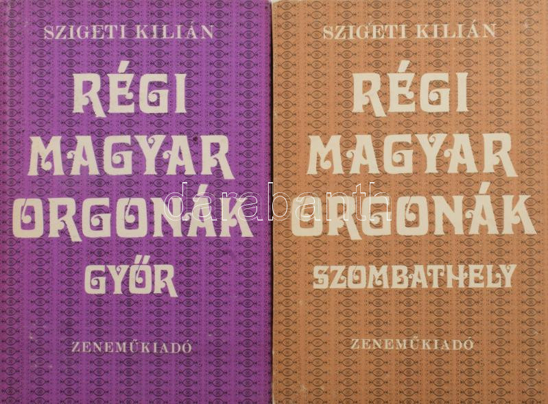 Leírás: Szigeti Kilián: Régi magyar orgonák 2 kötete: Győr, Szombathely. Bp., 1977-1978, Zeneműkiadó. Kiadói kartonált papírkötés, kopott borítókkal.