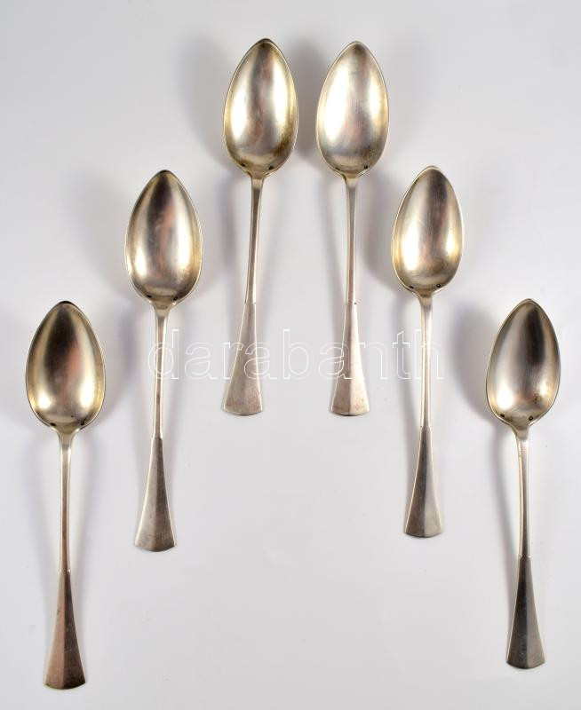 Leírás: Ezüst (Ag) kanál szett, 6 darab, h: 22,5 cm, jelzett, nettó 551g