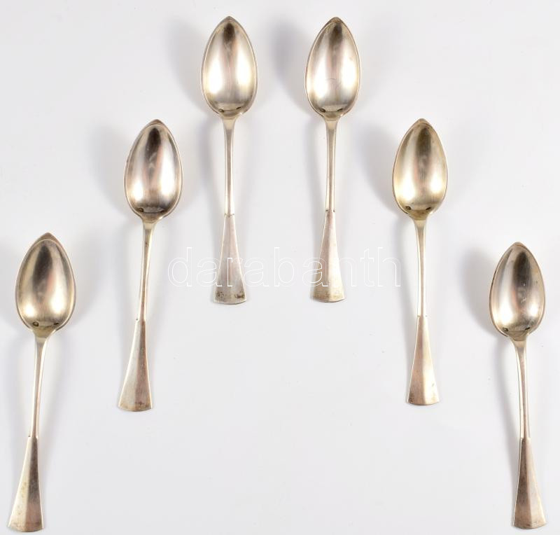 Ezüst (Ag) kávés kanál szett, 6 darab, jelzett, h: 12 cm, nettó 92g https://www.darabanth.com/hu/508-Gyorsarveres/508.0/Nemesfem-disztargyak-ekszerek-dragakovek/Nemesfem-disztargyak-ekszerek-dragakovek~858/Ezust-Ag-kaves-kanal-szett-6-darab-jelzett-h-12-cm-netto-92g~II3438117