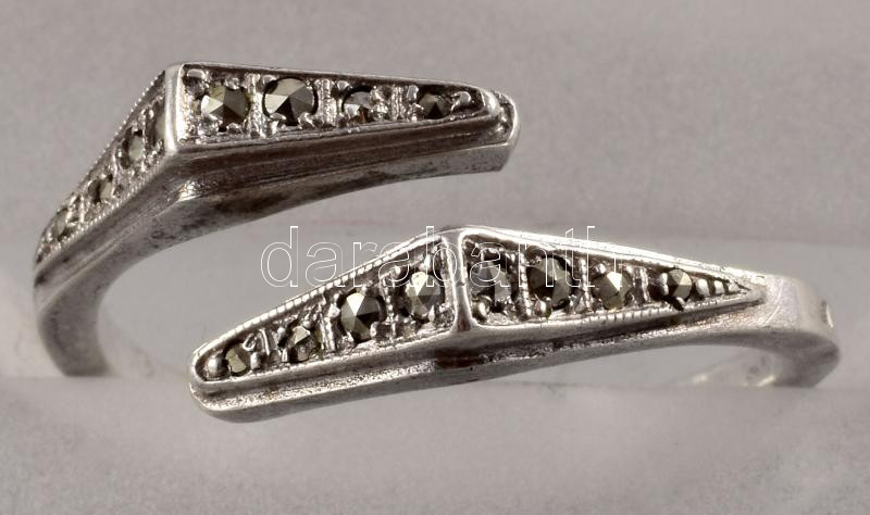 Leírás: Ezüst (Ag) markazitos gyűrű, jelzett, méret: 60, bruttó: 4 g