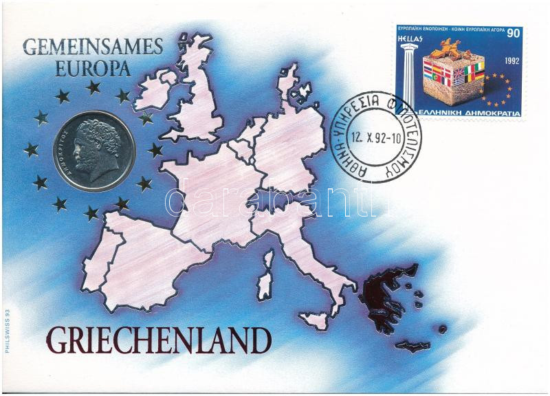 Görögország 1992. 10D Cu-Ni "Közös Európa" felbélyegzett borítékban, bélyegzéssel, német nyelvű tájékoztatóval T:UNC