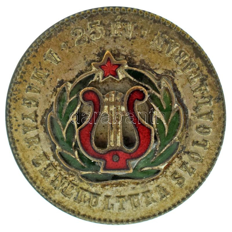 DN (~1965-1970) "25 év a Magyar Zenekultura Szolgálatában" z... https://www.darabanth.com/hu/508-Gyorsarveres/508.0/Numizmatika/Falerisztika-Kituntetesek-jelvenyek~848/DN-7E1965-1970-3Cem3E25-ev-a-Magyar-Zenekultura-Szolgalataban3Cem3E-zomancozott-bronz-jelveny-~II3439344