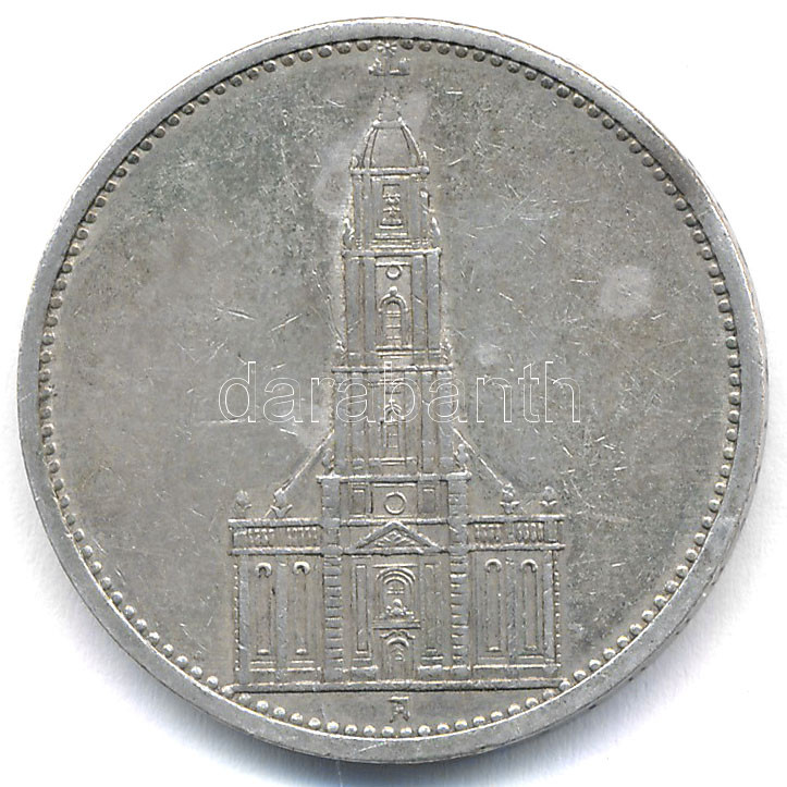 Német Harmadik Birodalom 1935A 5M Ag "Garnisonkirche" T:XF,VF patina German Third Reich 1935A 5 Reichsmark Ag "Garnisonkirche" C:XF,VF patina Krause KM#83