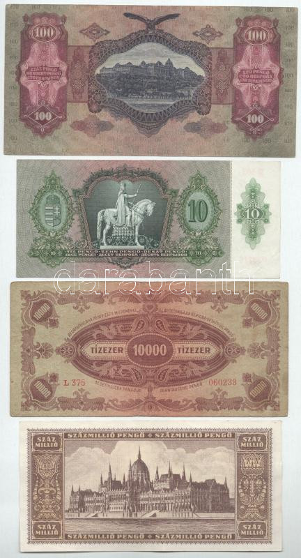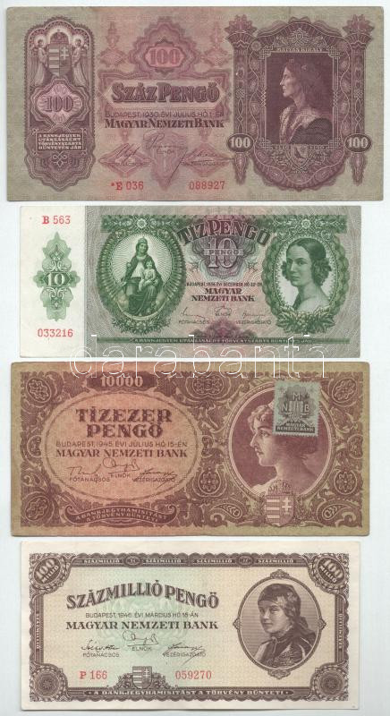 Leírás: 1930. 100P csillagos sorszámmal + 1936. 10P + 1945-1946. 10.000P - 100.000MP (5xklf,6db) T:F szép papír, közte VF
