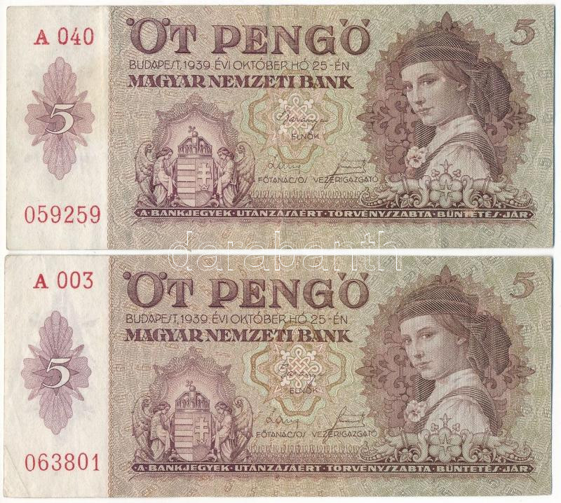 Leírás: 1939. 5P (2x) T:F, szép papír