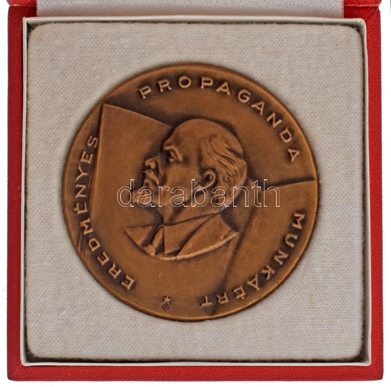 Leírás: 1975. "Eredményes Propaganda Munkáért " Lenin születésének évfordulója alkalmából kiadott egyoldalas bronz emlékérem, eredeti tokban (70mm) T:AU