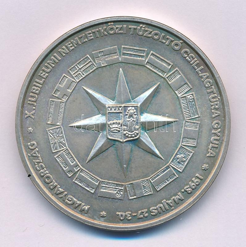 Leírás: 1993. "X. Jubileumi Nemzetközi Tűzoltó Csillagtúra - Gyula - 1993. május 27-30. / Tűzoltóparancsnokság - Gyula " kétoldalas, jelzett Ag emlékérem kapszulában (36,99g/0.925/43mm) T:XF