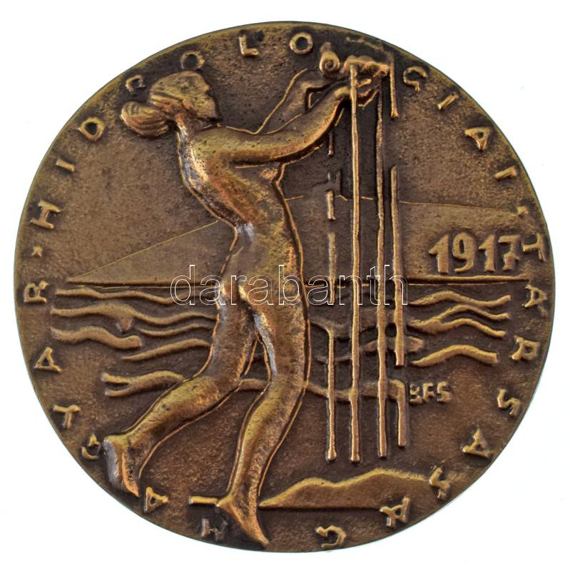 Boldogfai Farkas Sándor (1907-1970) DN "Bogdánfy Ödön 1863-1944 / Magyar Hidrológiai Társaság 1917" kétoldalas, öntött bronz plakett, dísztokban (73mm) T:AU