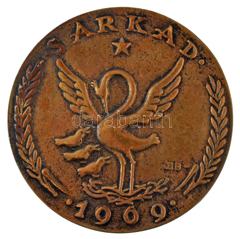 Leírás: Búza Barna (1910-2010) 1969. "Országos Fúvószenekari Találkozó / Sarkad 1969" kétoldalas, öntött bronz emlékplakett (81mm) T:AU, patina