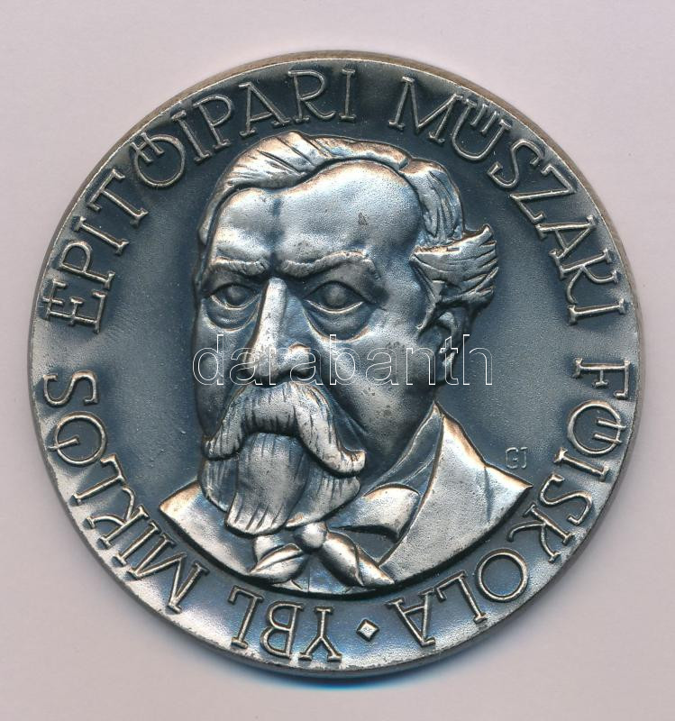 Leírás: Garamkeszi János (1936-) DN "Ybl Miklós Építőipari Műszaki Főiskola" egyoldalas, ezüstpatinázott bronz emlékérem (60mm) T:AU